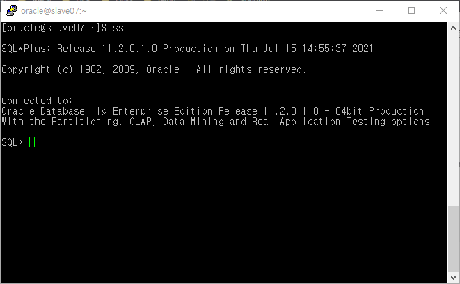 이제 sqlplus 를 ss명령어로 실행시킬 수 있습니다.